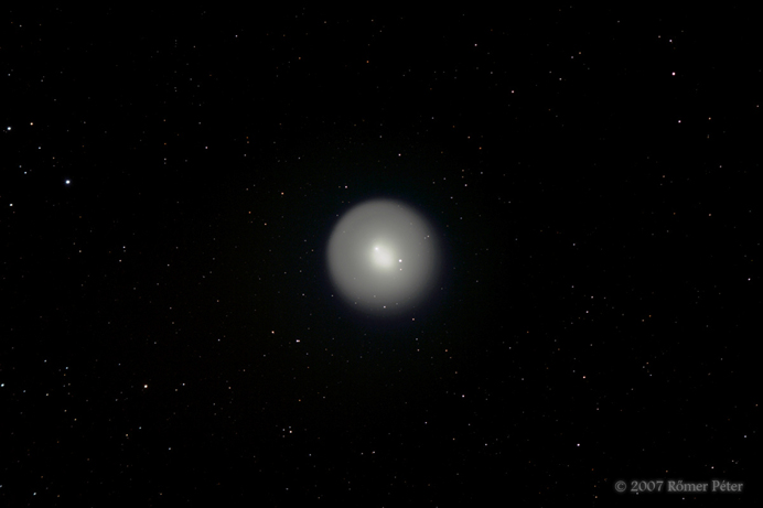 Used instruments - Telescope:100/900 ED apo - Mount:Synta HEQ5 pro, Synscan (goto) - Camera:Canon EOS 350D + Baader UV/IR block - Guiding:70/500 refr. manually Image details - Exposure time:19 x 30 sec (unguided) and 19 x 5 min - Iso speed:400 (short exp.), 1600 (long exp.) - FOV's size:Upper img.: 50' x 33' - Processing:Iris, Photoshop cs Details of creation - Seeing:4-5/10 - Temperature:7 °C - Humidity:55% rel. - Location:Budapest - Elevation:196 m (sea lev.=0) - Latitude:+47° 30' - Date:02.11.2007 Comments All images taken through Unioptik F.S.S. Deepsky filter